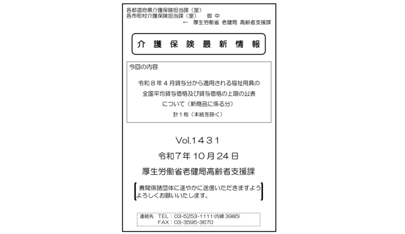 令和8年4月貸与分から適用される福祉用具の全国平均貸与価格及び貸与価格の上限の公表 について(新商品に係る分)