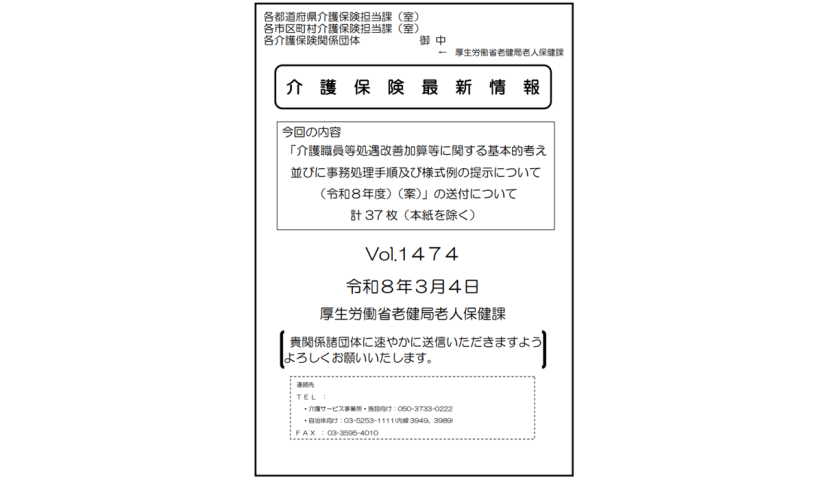 「介護職員等処遇改善加算等に関する基本的考え並びに事務処理手順及び様式例の提示について (令和8年度)(案)」の送付について