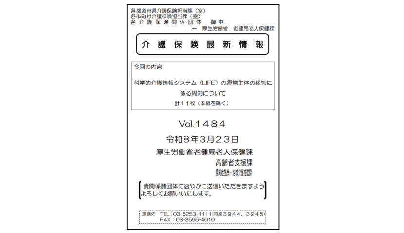 科学的介護情報システム(LIFE)の運営主体の移管に係る周知について