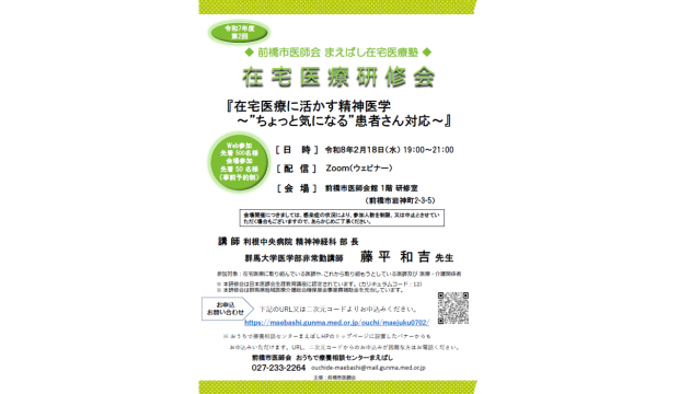 VISIT研修会 2020.01.07 2024.03.22 講習会・研修会情報 PDFで見る 令和元年度藤岡多野地域第2回在宅医療・介護人材育成研修会 前の記事 第4回地域包括ケアシステム講座 次の記事