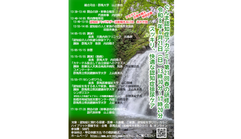[R8.6.21開催]ぐんま認知症アカデミー第 21回春の研修会 2026.04.28 講習会・研修会情報 PDFで見る [R8.5.23開催]群馬県歯と口の健康週間 県民公開講座の開催について 前の記事